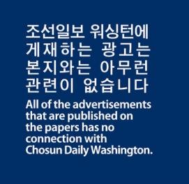 2022년 10월 27일 목요일 A9The Chosun Daily 전면광고 Tel.703-865-8310 Fax.703-865-8313 조선생활안내 Chosun Classified AD 703-980-0919 301-395-3199 좋은일 하는 사람들 십자원 재활센터 - 고 물 상 그린파워 환경 ◆ 크고작은 토목 / 석 공사 ◆ 토지, 택지, 농장 조성 ◆ 디자인 - 동양식, 서양식 정원 ◆ 패티오, 축대, 콘크리트, ◆ Wood Cut 츄림, 소독, 방역 ◆ 최신 장비 보유 ◆ “A”라이센스소지 ▶ 각종 재활용품 수거 ▶ 모든 고철 , 메탈류 , 기계 , 기구 ▶ 철거대행 (최신장비 보유 ) ▶ 기타판매 , 수리 703-916-0005 버지니아 내과전문병원 서진호 James J Suh, M.D. 위, 장, 간질환, B형간염 전문센터, 골다공증 사진검사와 치료, 고혈압, 심장질환, 콜레스테롤, 심전도, 신경통 등 진료과목 윤성원 피부과 진료 과목 ■모든 피부질환 ■사마귀 점 ■습진 ■여드름 ■알러지 ■피부 혹 암 ■피부 박피술 ■무좀 조갑진균증 ■모발질환 탈모증 ■손톱 발톱 질환 703-914-8778 (애난데일) 703-282-0522 7535 Little River Tnpk., #120-B Annandale, VA 22003 WWW.CNETCURITY.COM 미국 한인 비지니스 정보통신 기술의 자존심! 훼어팩스 메모리얼 파크 703-323- 5202 공원묘지·장의사 www.acupuncture-drs.com 동서한의원 고혈압 · 순환장애 · 당뇨병 만성피로 소화장애· 불면증 배뇨장애 · 교통사고 · 모든통증 치질·피부병·알러지 (항문병) (손발무좀) (콧물제체기) 301-592-1234 703.942.5257 703.942.8858 예담한의원 3대 를 이어가는 대한민국 정통 한의원 JUB 문화센터 한국무용 • 난타 사물놀이 • 미술 703-577-3578 미술 문의: 703-678-6639 봉사증 발급 • 장학금 지급 대통령 봉사상 인증기관 703-712-8548 곽두식 법률사무소 20년 경력의 베테랑 열정과 성실로 진행 703.649.4271 간호사 간병사 구함 영스헬스케어 구 인 꼭 연락 주세요!! PP 철공소 240-318-0180 ▲ 셔터문 • 울타리 • 철창 ▲ 보안철문 제작 수리 ▲ Handrail 및 철제품 판촉물이 필요하세요? 아이디어가 필요하세요? 고소희 꽃집 Cell 240.426.0100 VA 703.678.1010 MD 301.384.5299 결혼식 꽃 • 장례식 꽃 회갑연 • 축하연 화환 성전 꽃꽃이 실크 드라이 플라워 카펫 & 에어덕트 싱글 타운하우스 교회 식당 사무실 파워물청소 이사청소 베스트 크리닝 서비스 703-967-4155 워싱턴가정상담소 703.761.2226 정신과 무료상담 정신과 전화 상담 매주 화요일 오전 9시~낮 12시30분 오승환 부동산 410-303-0452 사업체 • 상용건물 주택매매 많은 리스트 보유하고 있습니다 연락주세요!! 703-951-7407 IRS 고액벌금 세무감사 “전문 변호사가 방어합니다” 새미김 세금전문 변호사 703-256-5500 (애난데일점) 코지마 안마의자 온열침대 지압쇼파 사계절 침구세트 각종 영양제 화장품 건강식품 모다모다 샴푸 2년간 총 3억불 펀딩 달성 직접 경험해 보세요! 703-868-7147 배준원 융자 Greenway Funding Group, Inc. 홉스프링 아동가족상담소 아동청소년성인부부 상담 자녀문제정신건강 관련 강의 우울증조울증불안장애 조현병스트레스 관리방법 703-259-5617 홍대 눈썹 571-432-7108 7110 Vermillion Pl Annandale, VA 22003 여자눈썹(1회) $100 남자눈썹(1회) $100 아이라인(1회) $100 점, 잡티(1개-상담필수) 0$10 MTS(1회) $130 고주파 스킨케어(1회) $130 아가페 노인복지센터 센터직원 간병사 703-354-6767 직원모집 JUNK Express & Moving 571-723-0446 원베드룸 전문 이사 폐기구 쓰레기 처분 비지니스 폐업 정리 각종 물건 딜리버리 당일견적, 서비스 가능 703-256-1004 (410) 696-2256 송영수 변호사 이혼파산유언장 민사형사교통사고 온라인 Zoom 상담 가능 법정공인 중재관 703-323-0002 ■ 자동차 사고 처리 ■ 무료 견적보험 수리 ■ 24시간 서비스 제공 브래덕 패밀리 투명교정 30% SALE 571.339.3628 치과 소아치과·잇몸치료 임플란트·응급환자 Residential & Commercial 703-489-9171 사이딩, 루핑 리페어 합니다 무료 견적 신우건축 식당, 상가, 주택, 신축 보수공사 703-932-3755 / 301-212-0266 ■ 일식, 데빵, 한식, 델리, 샐러드바 ■ 케리아웃, 각종 식당, 사무실 빌딩, 호텔 리모델링 ■ 지하실 화장실, 주방 케비넷 교체 ■ 전기, 플러밍 ■ 페인트, 마루, 타일, 창문 ■ 각종 목수일 상담 환영 공사기일 100% 책임 완수 VA,MD,DC 라이센스, 책임보험소지 도궁비 사주 운세 이름 이사 매매 궁합 607-454-1943 드림컴퓨터 703-996-9332 *무료점검* 정확한 진단 ! 정직한 가격 ! 산속한 서비스! *픽업 출장 가능* 703-508-7743 ◆ 건강식품 ◆ 유명화장품 ◆ 주방용품 ◆ 가전제품 음주운전 교통위반 아동학대·기물파손 폭행 절도 횡령 마약 ** 무료 상담 ** 데이빗 막스 변 호 사 703-385-1100 냉난방 인터테크 703-380-2282 ◈ 에어컨 ◈ ◈ 힛펌프 ◈ ◈ 워터히터 ◈ 미국회사10년경력 프렌즈 헬스케어 800-350-3147 571-424-7527 홈케어·데이케어 일상생활 도움 환자 치매환자 장애우 수술후 회복 환자 레이첼 김 부동산 주택·사업체 매매 전문 웹사이트로 전지역 매물 검색 가능 집에서 쉽게 쇼핑하세요! 703-774-8945 윈도우 솔루션 Window Solutions 301-347-6659 DMV 업체 품질 보증 저렴한 가격 무료 견적, 상담 환영 20% 할인 방 렌트 404-579-7681 페어팩스 지역 (H마트 옆) 방 1개 여자분 환영 구인 박동수 치과 전문의 치주·임플란트 전문 풀 파타임 보조 리셉션 govaepic@gmail.com 703-466-5115 571-251-1095 직원 채용 프렌즈 홈케어 사무직 영어, 컴퓨터 사