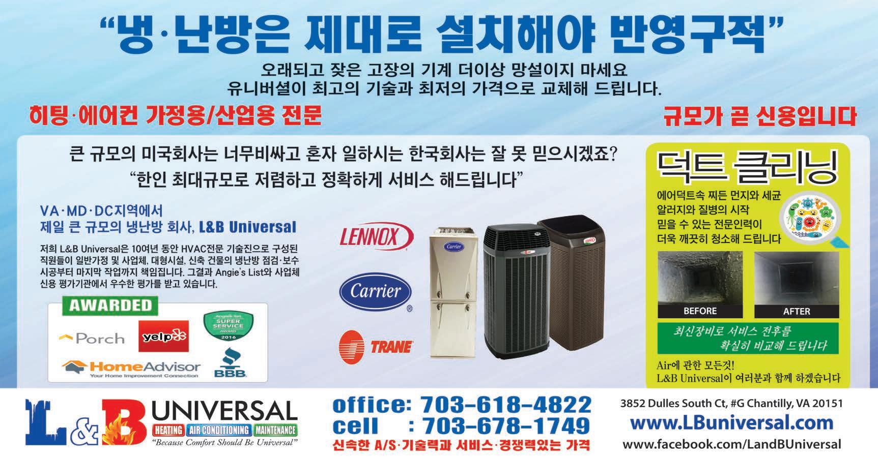 2022년 11월 3일 목요일 A9The Chosun Daily 전면광고 조선생활안내 Chosun Classified AD 703-980-0919 301-395-3199 좋은일 하는 사람들 십자원 재활센터 - 고 물 상 그린파워 환경 ◆ 크고작은 토목 / 석 공사 ◆ 토지, 택지, 농장 조성 ◆ 디자인 - 동양식, 서양식 정원 ◆ 패티오, 축대, 콘크리트, ◆ Wood Cut 츄림, 소독, 방역 ◆ 최신 장비 보유 ◆ “A”라이센스소지 ▶ 각종 재활용품 수거 ▶ 모든 고철 , 메탈류 , 기계 , 기구 ▶ 철거대행 (최신장비 보유 ) ▶ 기타판매 , 수리 703-916-0005 버지니아 내과전문병원 서진호 James J Suh, M.D. 위, 장, 간질환, B형간염 전문센터, 골다공증 사진검사와 치료, 고혈압, 심장질환, 콜레스테롤, 심전도, 신경통 등 진료과목 윤성원 피부과 진료 과목 ■모든 피부질환 ■사마귀 점 ■습진 ■여드름 ■알러지 ■피부 혹 암 ■피부 박피술 ■무좀 조갑진균증 ■모발질환 탈모증 ■손톱 발톱 질환 703-914-8778 (애난데일) 703-282-0522 7535 Little River Tnpk., #120-B Annandale, VA 22003 WWW.CNETCURITY.COM 미국 한인 비지니스 정보통신 기술의 자존심! 훼어팩스 메모리얼 파크 703-323- 5202 공원묘지·장의사 www.acupuncture-drs.com 동서한의원 고혈압 · 순환장애 · 당뇨병 만성피로 소화장애· 불면증 배뇨장애 · 교통사고 · 모든통증 치질·피부병·알러지 (항문병) (손발무좀) (콧물제체기) 301-592-1234 703.942.5257 703.942.8858 예담한의원 3대 를 이어가는 대한민국 정통 한의원 JUB 문화센터 한국무용 • 난타 사물놀이 • 미술 703-577-3578 미술 문의: 703-678-6639 봉사증 발급 • 장학금 지급 대통령 봉사상 인증기관 703-712-8548 곽두식 법률사무소 20년 경력의 베테랑 열정과 성실로 진행 703.649.4271 간호사 간병사 구함 영스헬스케어 구 인 꼭 연락 주세요!! PP 철공소 240-318-0180 ▲ 셔터문 • 울타리 • 철창 ▲ 보안철문 제작 수리 ▲ Handrail 및 철제품 판촉물이 필요하세요? 아이디어가 필요하세요? 고소희 꽃집 Cell 240.426.0100 VA 703.678.1010 MD 301.384.5299 결혼식 꽃 • 장례식 꽃 회갑연 • 축하연 화환 성전 꽃꽃이 실크 드라이 플라워 카펫 & 에어덕트 싱글 타운하우스 교회 식당 사무실 파워물청소 이사청소 베스트 크리닝 서비스 703-967-4155 워싱턴가정상담소 703.761.2226 정신과 무료상담 정신과 전화 상담 매주 화요일 오전 9시~낮 12시30분 오승환 부동산 410-303-0452 사업체 • 상용건물 주택매매 많은 리스트 보유하고 있습니다 연락주세요!! 703-951-7407 IRS 고액벌금 세무감사 “전문 변호사가 방어합니다” 새미김 세금전문 변호사 703-256-5500 (애난데일점) 코지마 안마의자 온열침대 지압쇼파 사계절 침구세트 각종 영양제 화장품 건강식품 모다모다 샴푸 2년간 총 3억불 펀딩 달성 직접 경험해 보세요! 703-868-7147 배준원 융자 Greenway Funding Group, Inc. 홉스프링 아동가족상담소 아동청소년성인부부 상담 자녀문제정신건강 관련 강의 우울증조울증불안장애 조현병스트레스 관리방법 703-259-5617 홍대 눈썹 571-432-7108 7110 Vermillion Pl Annandale, VA 22003 여자눈썹(1회) $100 남자눈썹(1회) $100 아이라인(1회) $100 점, 잡티(1개-상담필수) 0$10 MTS(1회) $130 고주파 스킨케어(1회) $130 아가페 노인복지센터 센터직원 간병사 703-354-6767 직원모집 JUNK Express & Moving 571-723-0446 원베드룸 전문 이사 폐기구 쓰레기 처분 비지니스 폐업 정리 각종 물건 딜리버리 당일견적, 서비스 가능 703-256-1004 (410) 696-2256 송영수 변호사 이혼파산유언장 민사형사교통사고 온라인 Zoom 상담 가능 법정공인 중재관 703-323-0002 ■ 자동차 사고 처리 ■ 무료 견적보험 수리 ■ 24시간 서비스 제공 브래덕 패밀리 투명교정 30% SALE 571.339.3628 치과 소아치과·잇몸치료 임플란트·응급환자 Residential & Commercial 703-489-9171 사이딩, 루핑 리페어 합니다 무료 견적 신우건축 식당, 상가, 주택, 신축 보수공사 703-932-3755 / 301-212-0266 ■ 일식, 데빵, 한식, 델리, 샐러드바 ■ 케리아웃, 각종 식당, 사무실 빌딩, 호텔 리모델링 ■ 지하실 화장실, 주방 케비넷 교체 ■ 전기, 플러밍 ■ 페인트, 마루, 타일, 창문 ■ 각종 목수일 상담 환영 공사기일 100% 책임 완수 VA,MD,DC 라이센스, 책임보험소지 도궁비 사주 운세 이름 이사 매매 궁합 607-454-1943 드림컴퓨터 703-996-9332 *무료점검* 정확한 진단 ! 정직한 가격 ! 산속한 서비스! *픽업 출장 가능* 703-508-7743 ◆ 건강식품 ◆ 유명화장품 ◆ 주방용품 ◆ 가전제품 음주운전 교통위반 아동학대·기물파손 폭행 절도 횡령 마약 ** 무료 상담 ** 데이빗 막스 변 호 사 703-385-1100 냉난방 인터테크 703-380-2282 ◈ 에어컨 ◈ ◈ 힛펌프 ◈ ◈ 워터히터 ◈ 미국회사10년경력 프렌즈 헬스케어 800-350-3147 571-424-7527 홈케어·데이케어 일상생활 도움 환자 치매환자 장애우 수술후 회복 환자 레이첼 김 부동산 주택·사업체 매매 전문 웹사이트로 전지역 매물 검색 가능 집에서 쉽게 쇼핑하세요! 703-774-8945 윈도우 솔루션 Window Solutions 301-347-6659 DMV 업체 품질 보증 저렴한 가격 무료 견적, 상담 환영 20% 할인 방 렌트 404-579-7681 페어팩스 지역 (H마트 옆) 방 1개 여자분 환영 급구 치주 임플란트 전문 치과 풀·파트 어씨·리셉션 경력 우대 초보 교육가능 govaepic@gmail.com 703-574-0528 571-251-1095 직원 채용 프렌즈 홈케어 사무직 영어, 컴퓨터 사용 필수. 파타임, 