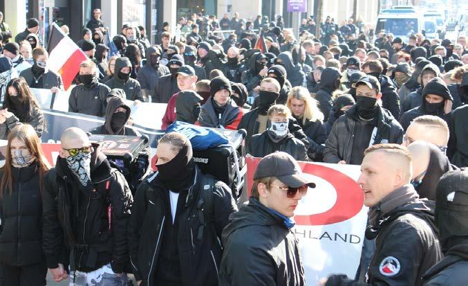 나치 200여명이 행진을 시작했다. 집회를