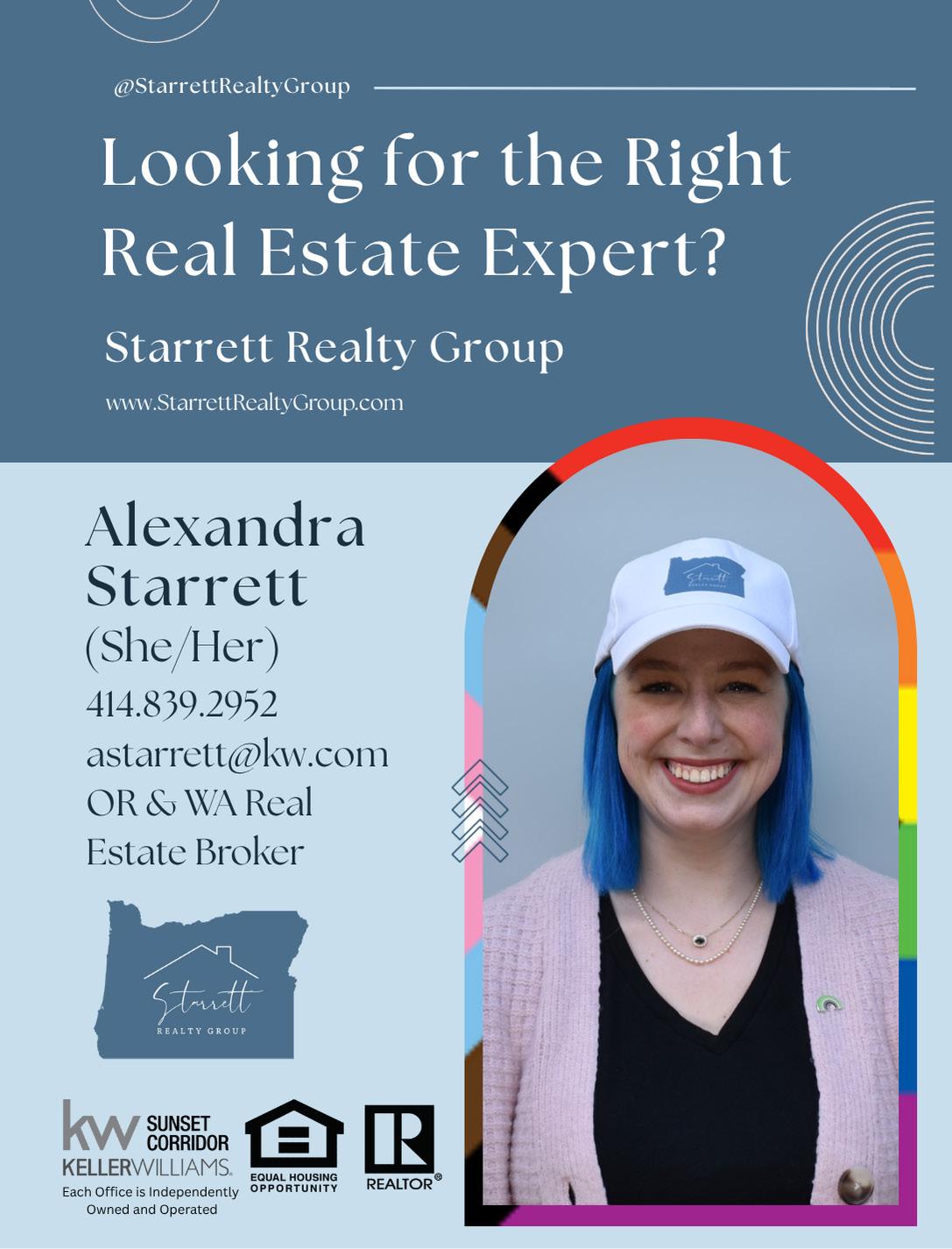 Alexandra Starrett - Oregon Real Estate Broker 1915 NE Stucki Ave Ste 250 Hillsboro, OR 97006 (414) 839-2952