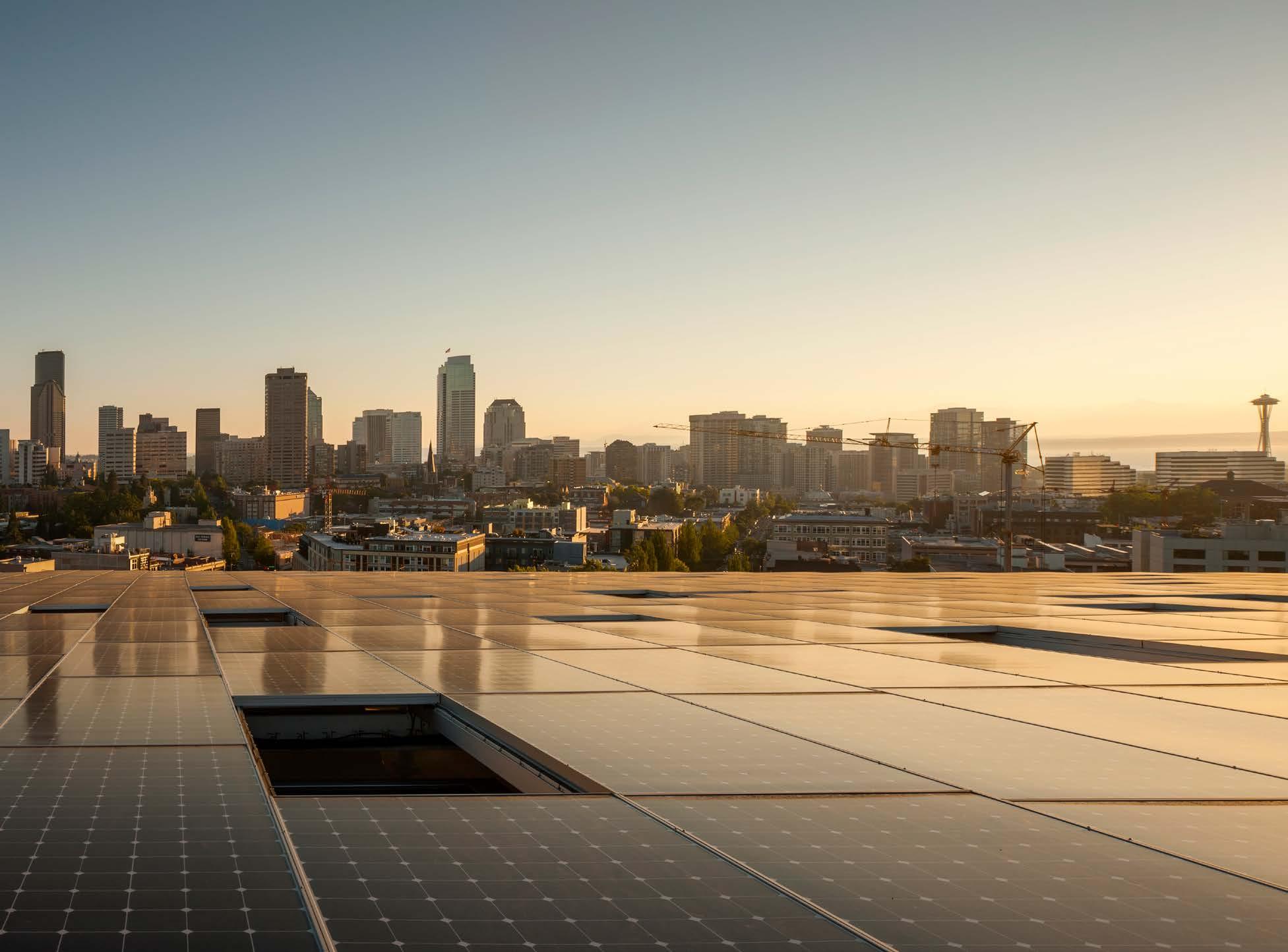 Solar panels sit atop the Bullitt Center, often called the “greenest building in the world,” in Seattle, WA