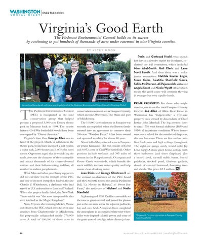 Virginia’s Good Earth The Piedmont Environmental Council builds on its success by continuing to put hundreds of thousands of acres under easement in nine Virginia counties. BY VICKY MOON