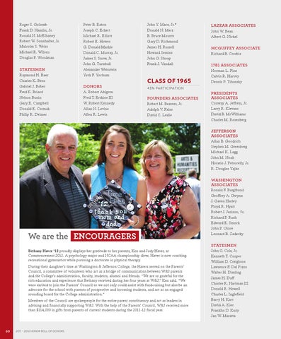 Members of the Council are spokespeople for the entire parent constituency and act as leaders in advising and financially supporting W&J. With the help of the Parents’ Council, W&J received more than $114,000 in gifts from parents of current students during the 2011-12 fiscal year.