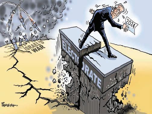 Accepted without question the Israeli narrative and repeated unsubstantiated claims of atrocities committed by Hamas fighters in the aftermath of the Oct. 7 attack. Today, thanks to fact-checkers, whistle-blowers and meticulous investigations (see pp. 3235 and “Other Voices” articles), these tall tales have been debunked by Electronic Intifada, Mondoweiss, Al Jazeera and other alternative media. To ensure access to this reporting, we are offering “Other Voices” for free to all subscribers this issue. We hope you subscribe to the supplement for just $15 a year. While Israel has cut electricity and internet access to Gaza and even killed reporters, it hasn’t managed to block the images and words coming from Gaza and the West Bank. It is slowly dawning on journalists that they’ve been hoodwinked and fed propaganda to distract them from reporting on the catastrophic scale of death and destruction inflicted on Gaza (see pp. 24-26).