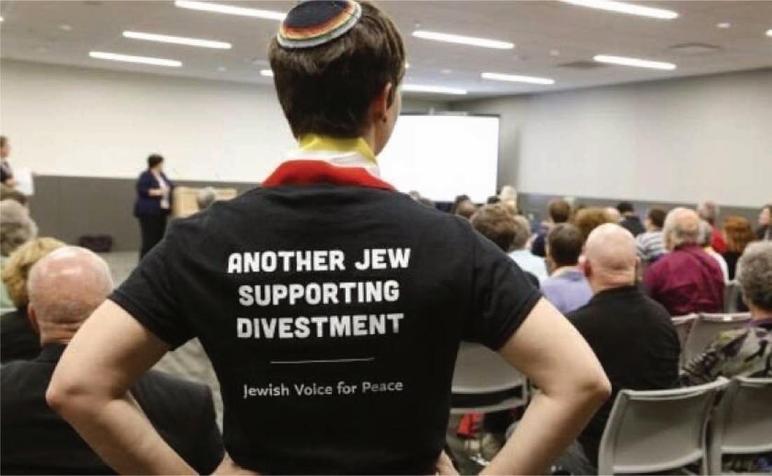 JVP member wearing “another Jew supporting divestment” shirt.