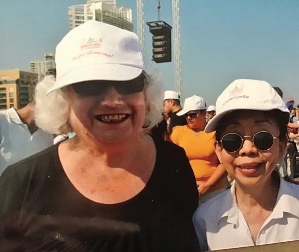 LEFT: Ellen Siegel (l) and Dr. Swee Ang, in Jerusalem prior to testifying before the Kahan Commission, October 1982. RIGHT: The authors (l) Ellen Siegel and Dr. Swee Ang at Beirut's port, awaiting Pope Benedict's visit in 2012.