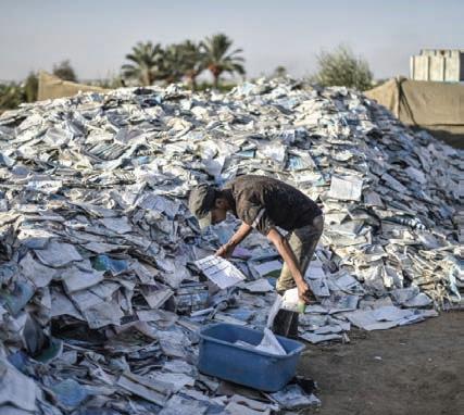 ABED ZAGOUT/ANADOLU AGENCY VIA GETTY IMAGES Palestinian entrepreneur Akram al‐Umur, 45, turns collected paper into egg cartons in Khan Yunis, Gaza on Oct. 17, 2022. Palestinians are experts in making do with nothing. If Israel lifted its apartheid policies in occupied Palestine and its land, air and sea blockade of Gaza, which devastate their economies and isolate them from the outside world, there is no telling what Palestinians could accomplish. Hajira Asghar, founder of Students Against Imperialism at the George Washington University, now staffs the bookstore on weekends and will also use her writing talents in the magazine (see p. 42). Associate editors Julia Pitner (now our congressional reporter, see pp. 2025) and Ida Audeh (see p. 46) are both using their editing expertise on our team. We’d like to actually hire these folks and select others who could help us reach out beyond our own choir to find new readers, writers, advertisers and grants. It’s exhausting running this magazine on fumes. A Constant Drip A major renovation has repaired a decades-old leak in the back of Middle East Books and More. So now we can roll up our sleeves and expand the shop to provide more room for book talks, film screenings and co-hosting events with our neighbors, the Museum of the Palestinian People. We need a serious grant or many smaller donations to fund this project. Don’t wait for our second biannual donation appeal....donate online or send a check, just please dig deep so we can all... Make a Difference Today!