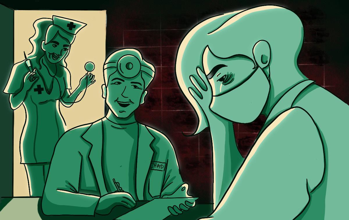 Illustration, Cassie Stewart, for a April 12, 2022 illustration accompanying a column about the state of health care