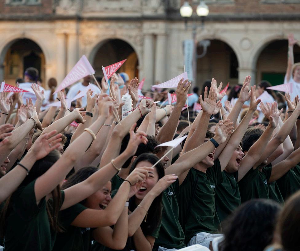 Energy was high as students walked to Brookings Quadrangle with their residential colleges, yelling spirit chants, connecting with other students, and kicking off their first year at convocation on Saturday night, Aug. 23.