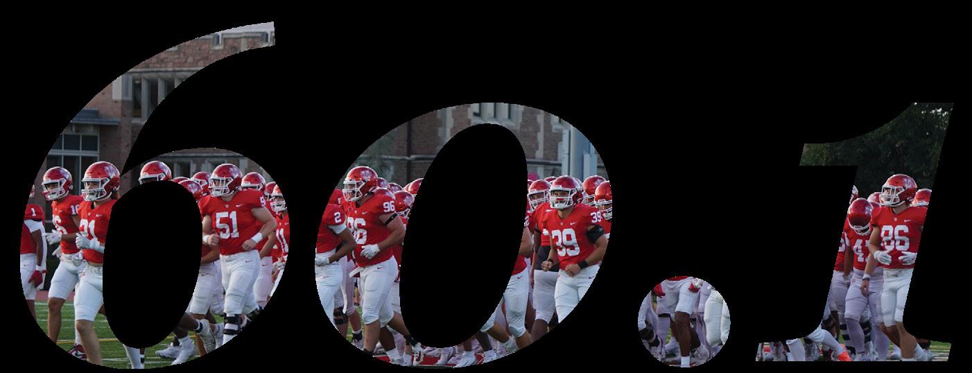 Of total yards gained on run plays. Senior Fred Ware and juniors Matthew Kinoshita and Levi Moore have combined for 15 rushing touchdowns.
