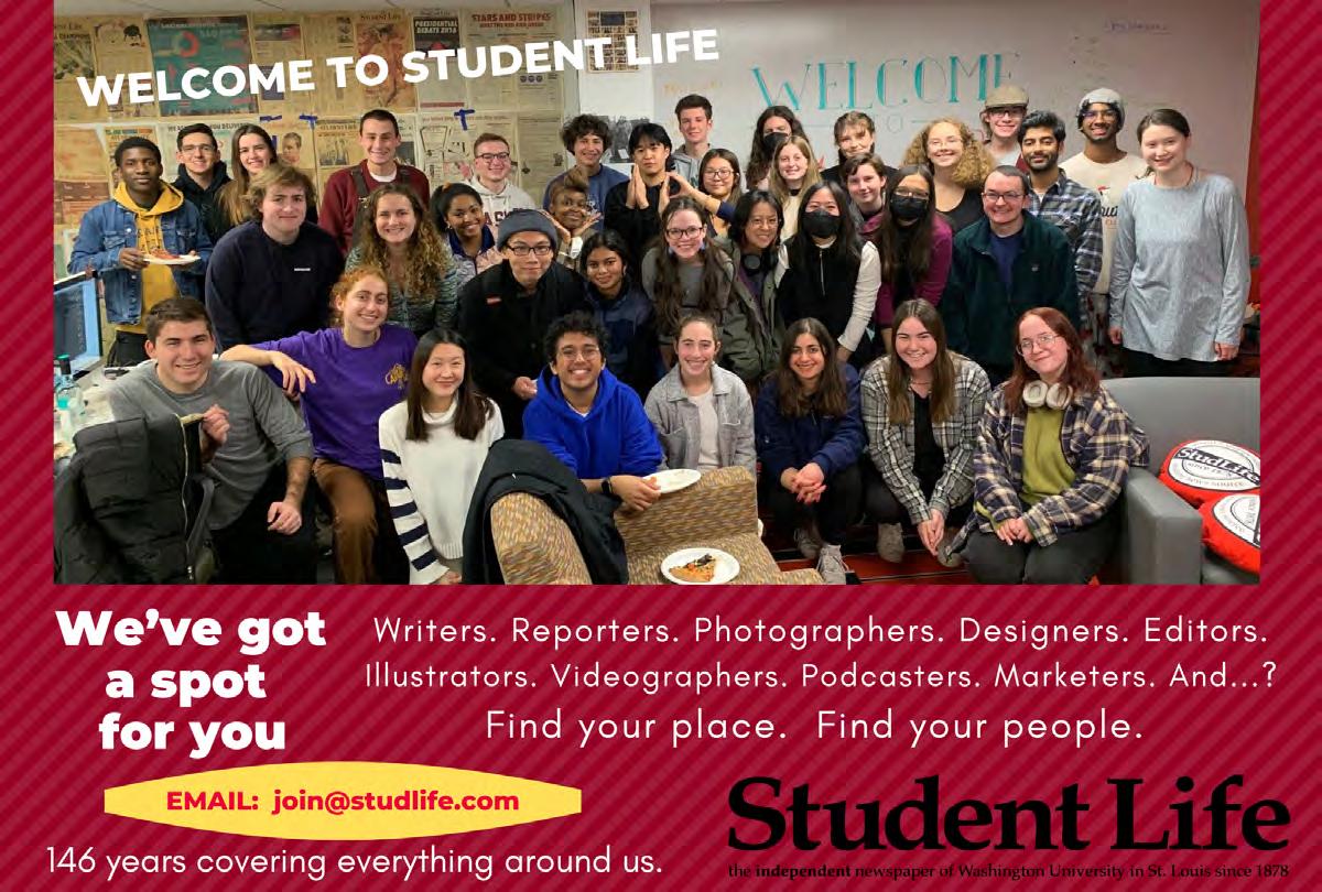 WashU has hundreds of clubs, and there is no better way to get to know them and their members than by attending the activity fair during the first week of classes. While it can be daunting to see the hundreds of tables with unfamiliar faces sprawled across Mudd Field, choose a couple clubs that interest you and go check them out. I have made some of my closest friends through being involved in clubs, including Student Life. Student organizations give you a great opportunity to find like-minded individuals that share similar interests but that come from diverse backgrounds. You get to