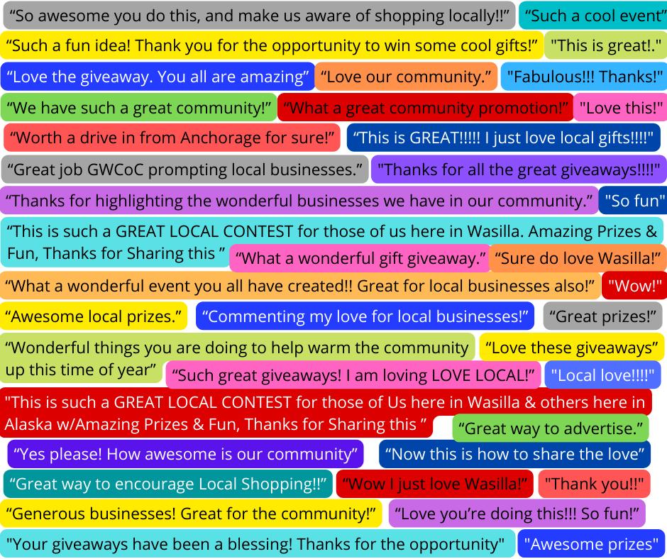 Participation in Love Local is included in your Wasilla Chamber Membership. Giveaway donation valued at a minimum of $25 required. Limited number of opportunities available to join the live video drawings for additional brand promotion opportunity.