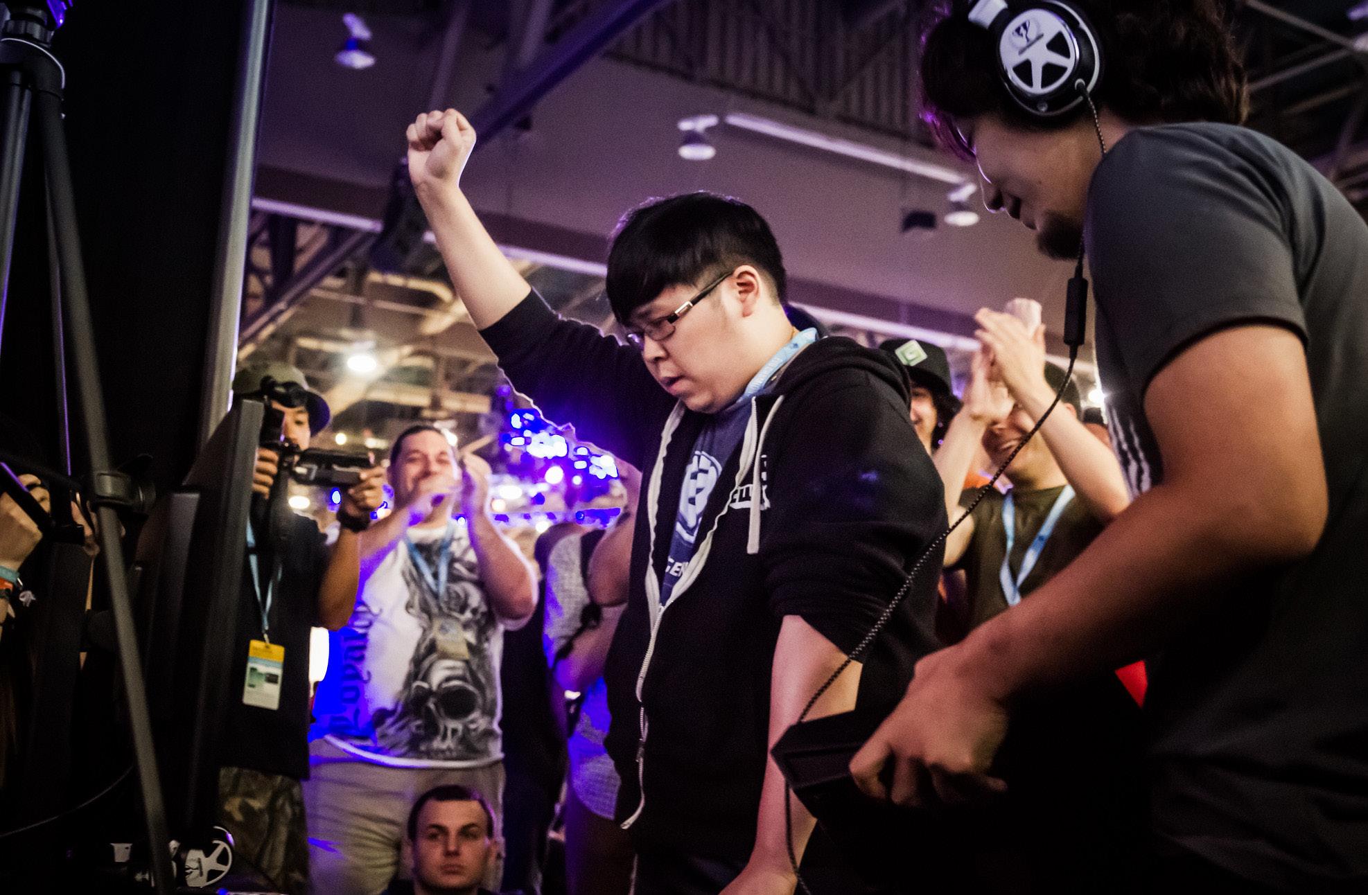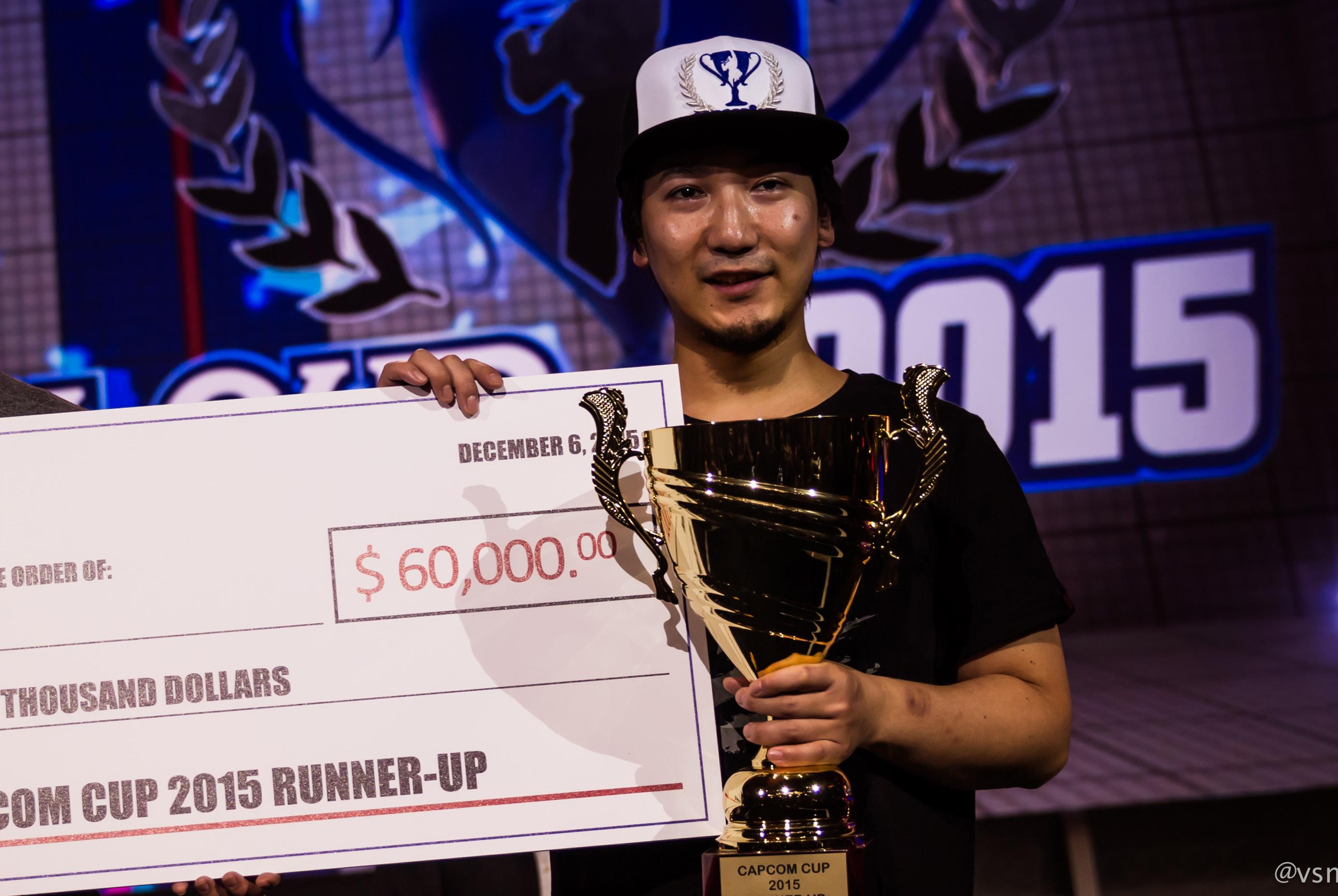 Fig. 7 Umehara Daigo at Capcom Cup 2015 winning a round with his character's finishing move.