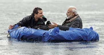Met premier Modi van India. Dit was het moment waarop de Indiase geheime dienst een beetje zenuwachtig werd en begon mee te rennen langs de rivier, in de veronderstelling dat de premier elk moment kon verdrinken. Ik had beloofd dat het vlot niet zou zinken, maar op dat moment was ik niet meer zo zeker.