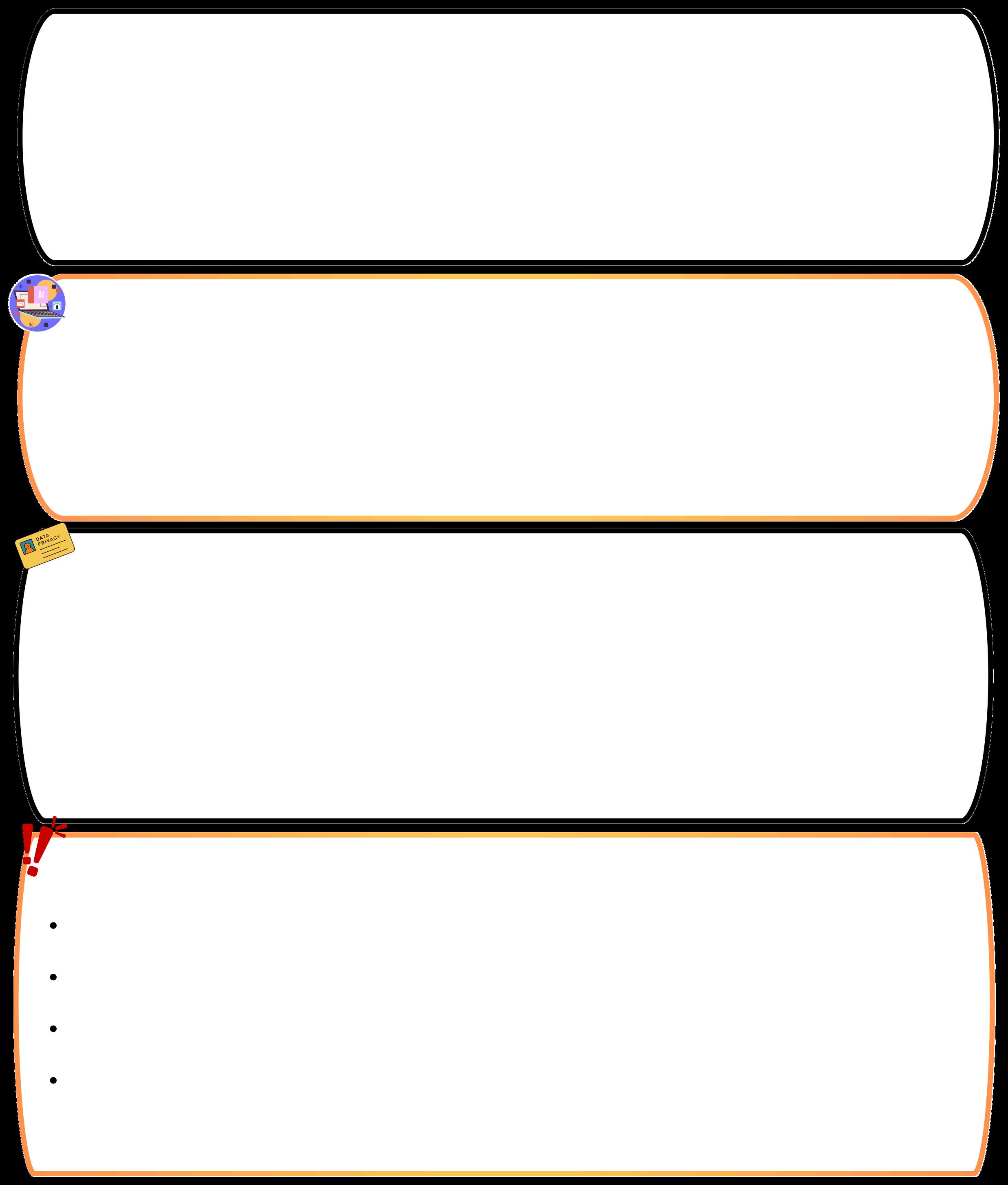 WhenusingAItools,it’sreallyimportanttoprotectyourownprivacy andtheprivacyofothers. Neverenterpersonaldetailslikenames,addresses,phonenumbers,orinformationaboutyourself, classmatesorteachersintoAIsystems.Oncethatinformationgoesintothetool,wecan’tcontrol whereitgoesorhowit’sused.