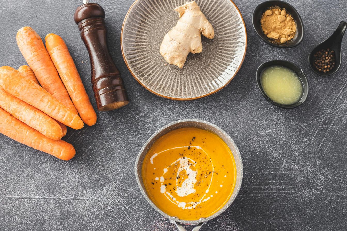 How to Cook: Sauté onion, carrots & ginger. 1. Add broth & simmer for 20 minutes. 2. Blend until smooth, stir in coconut milk. 3.