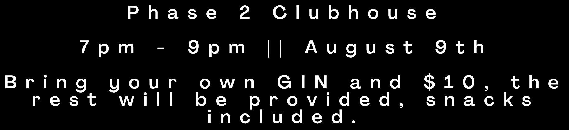 snacks provided. byob. $5 per person, 4 member team maximum. A U G U S T 5 T H | 7 P M P H A S E 2 C L U B H O U S E