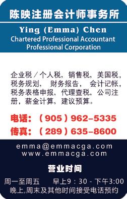 Service 其 他 服 务 Dentist 牙 医 潘蓉蓉( Dr.Pan) ………………… 905-529-2164 ThinkWE 心理咨询师 Stone Fu ……………………………… 289-698-5502 YWCA移民和妇女服务 ………………………………905-818-5260 密西加沙华人协会 …………………………… 905-275-8558 OnCourse学业辅导学校 ………………………………905-308-8311 莫霍克学院新移民免费培训课程 ……………………………请加微信号:robertgwzhou 维多利亚学院职业培训课程 ……………………………请加微信号:robertgwzhou 金牌贷款经纪 James Wang ………………………… 647-920-1123 Chartered Professional Accountant Emma ………………………………… 905-962-5335 陈映会计师事务所 陈映 全牌保险经纪人 Jingwen Tang ………………………… 519-991-0868 会计师 Tony Zhang ………………………… 647-636-0403 Financial service accounting & Tax 金 融 财会