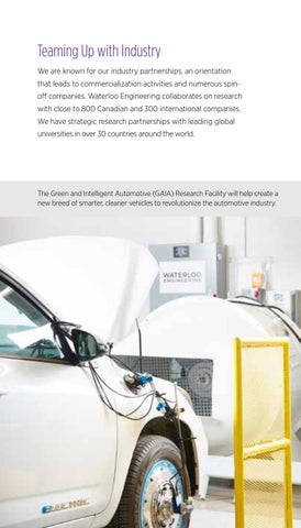Teaming Up with Industry We are known for our industry partnerships, an orientation that leads to commercialization activities and numerous spinoff companies. Waterloo Engineering collaborates on research with close to 800 Canadian and 300 international companies. We have strategic research partnerships with leading global universities in over 30 countries around the world.