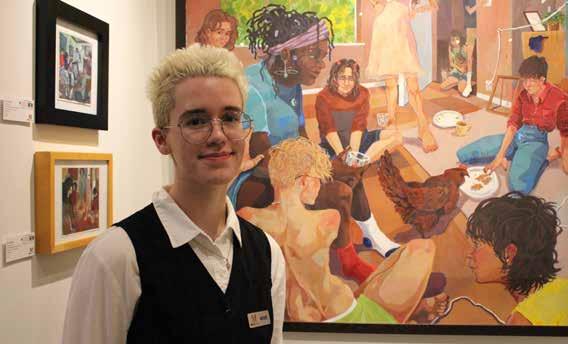 Illustrator and painter Alex Rogers, whose work centers on queer and trans people, was selected to showcase his art at Mills Gallery Arts for the second edition of the Winn Win Emerging Artists Exhibition. The exhibition also highlights four other emerging artists Jordan Carl Jones, Sophia Mitchell, Xavier Moss and Mya Osborne, who represent the diversity and vision. Read more on p. 8 and view photos at WatermarkOutNews.com.
