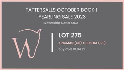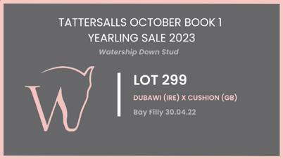 Nurturing Talent Watership Down Stud, Berkshire & Kiltinan Castle Stud, Co. Tipperary watershipdownstud.com Tattersalls October Sales 2023 BOOK 1 Please don’t hesitate to contact me if you need any further information on any of our yearlings. Simon Marsh, General Manager Mobile: +44 (0)7831 545438 Including comprehensive family updates, pedigree analysis, videos and images.