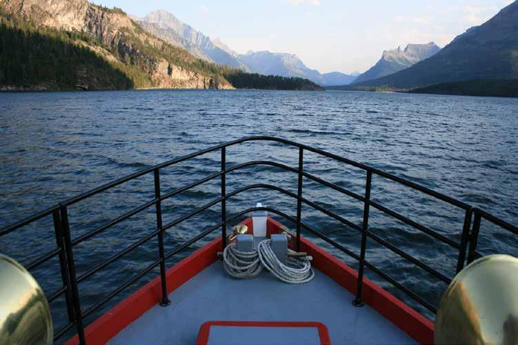 Historic M.V. International shuttles passengers across the liquid border shimmering between Goat Haunt, Montana and Emerald Bay in Waterton Park, Alberta. Once upon a time, during the days of Alberta’s so-called Blue-Laws, the vessel was used as a boat of festivities, so that people could step aboard to enjoy music, dance and drink in Montana (outside of Alberta’s jurisdiction.)