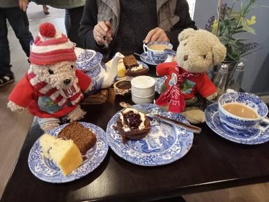 Our human guardians, Polar and Grizzly, took us to look around the Wedgwood Visitor Centre last year and, because we were (mostly) well-behaved, we were allowed to have tea and cake there, on very posh china. As you can see, they make cakes that are just the right size for us Small Bears!