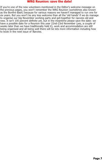 Subscriptions: Ayear'ssubscription(6issues) isaminimum of £5.00 (please add a donation if you can) to WRG, Unit 16B, First Floor, Chiltern Court, Asheridge Road, Chesham HP5 2PX. Cheques must be made out to The Inland Waterways Association (although the proceeds will be put to WRG / Navvies use).