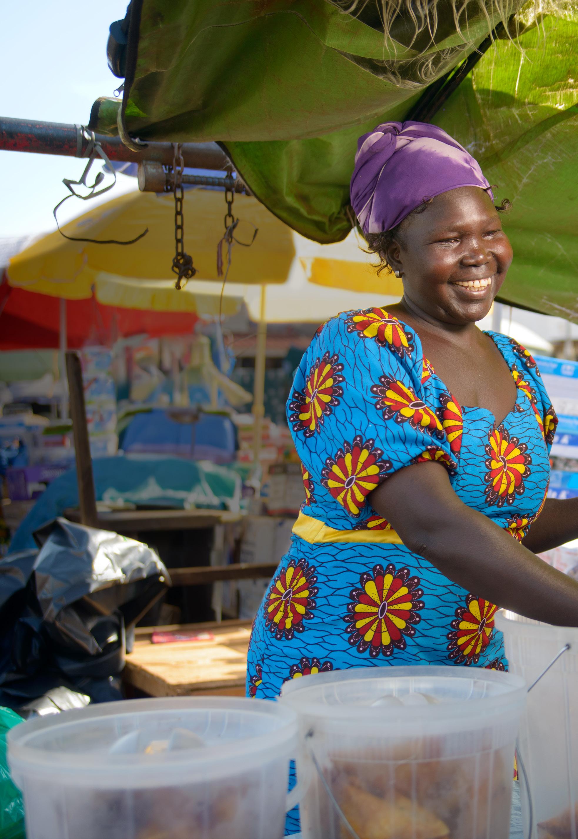 Now she runs a shop selling baked goods, and she and her children are able to go to bed with full bellies.