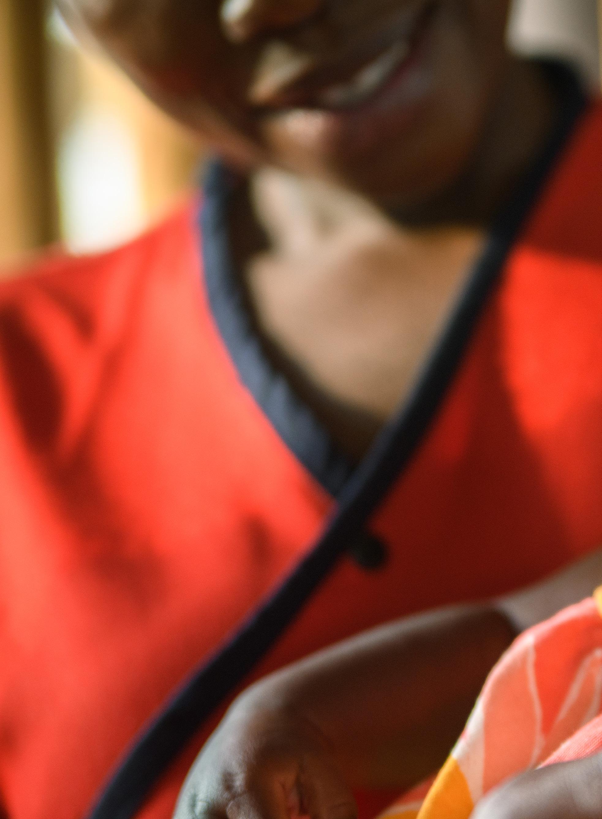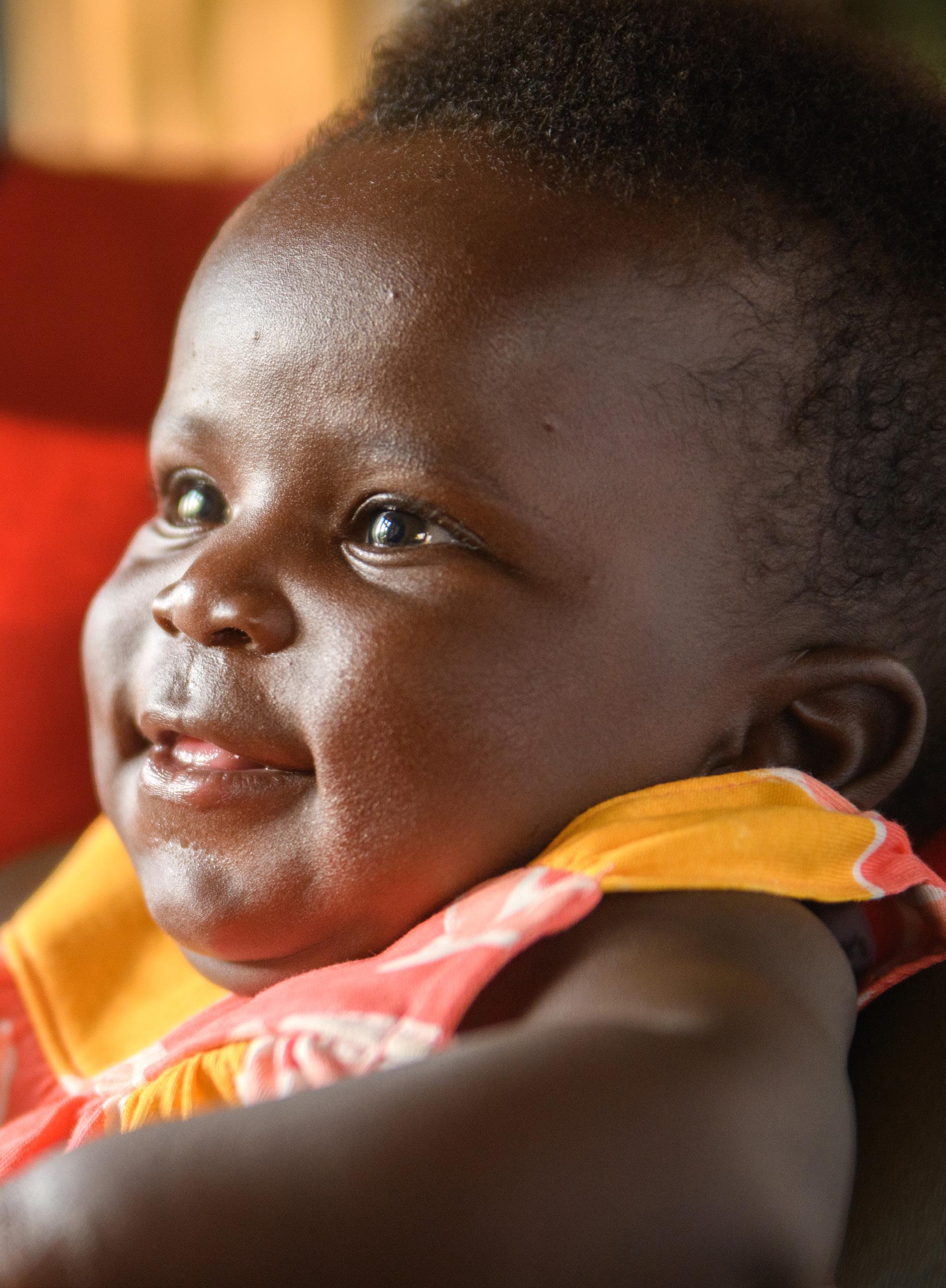 Baby Blessing is happy and safe in the arms of her nanny, Olympia.