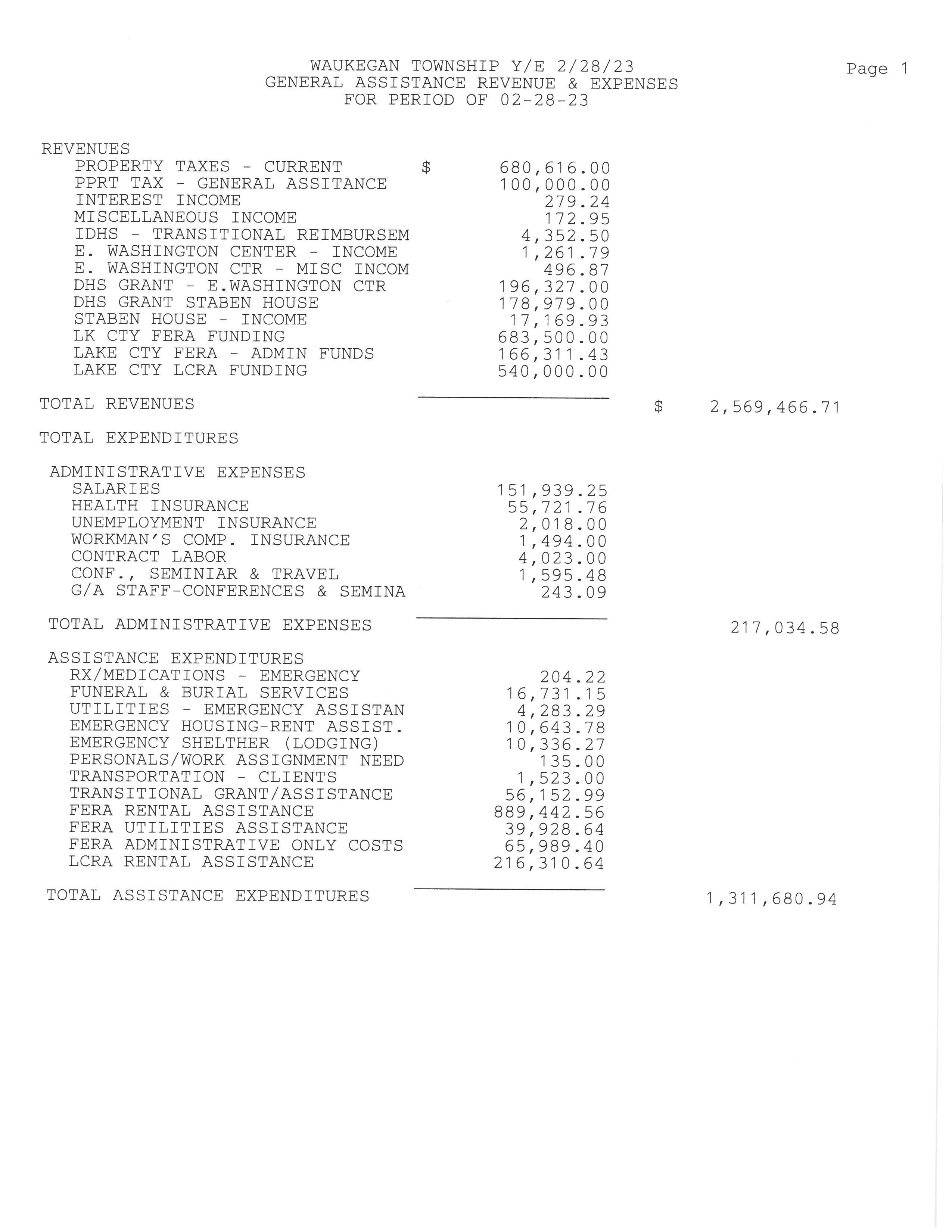 Waukegan Township Financial Report