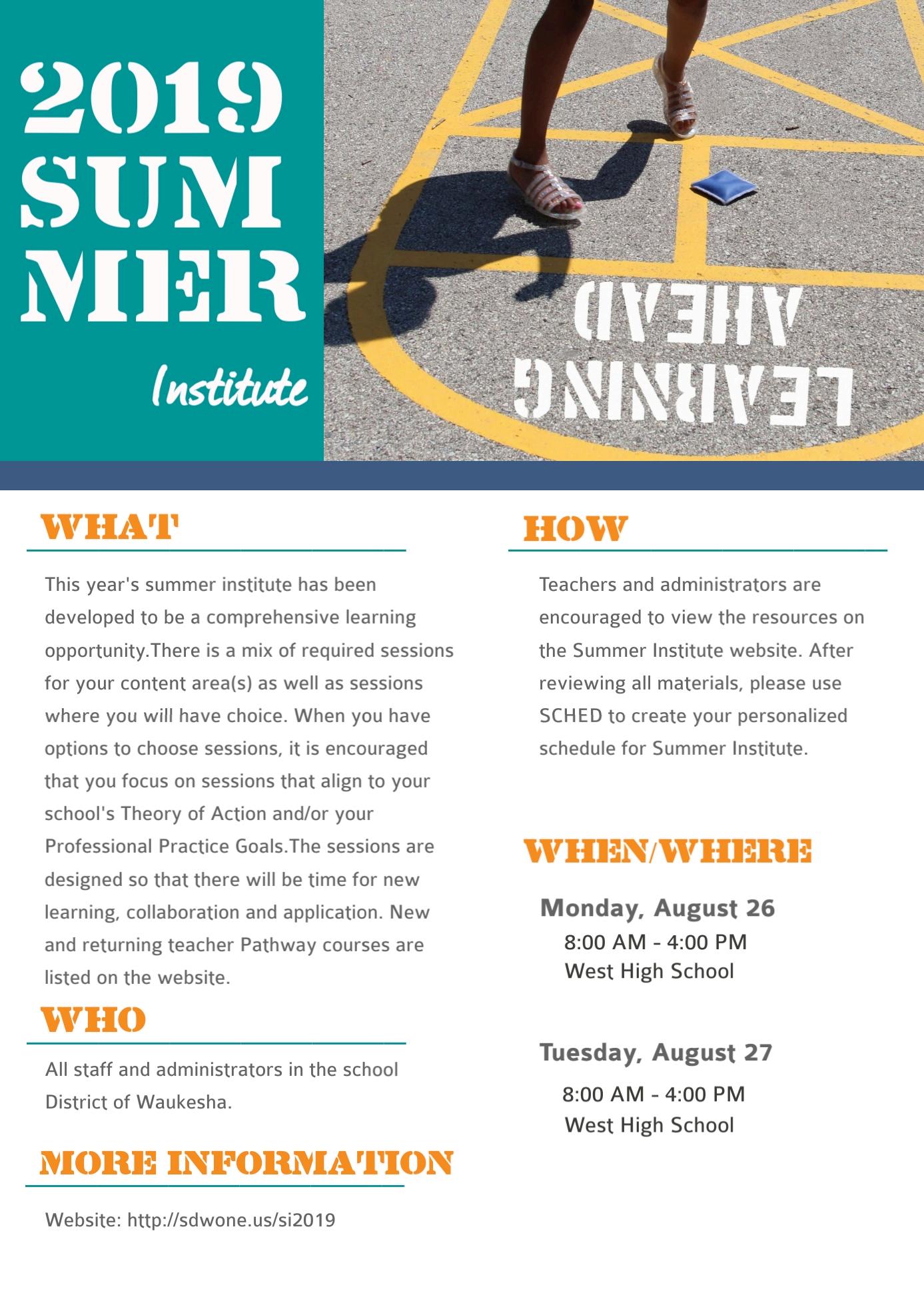 The School District of Waukesha is proud to host a two day Summer Institute when teachers return for the year. Hundreds of courses are offered and taught by our very own staff. These courses will provide a foundation as you begin your work in the School District of Waukesha.
