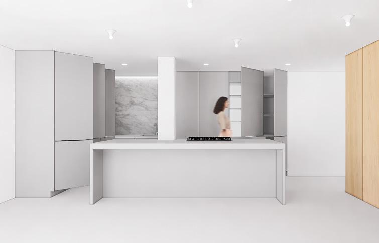 WHITE MELAMINE FINISH, TYP. FENIX NTM PANEL COUNTERTOP (PL-2), TYP. AP-4
