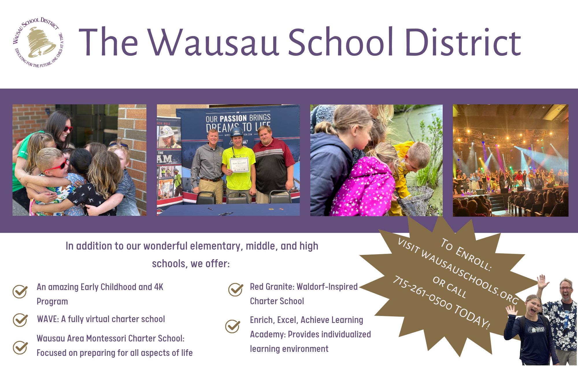 Schools: The Wausau School District operates eleven elementary schools, two charter schools, two middle schools and two high schools in the city. Faith Christian Academy, Trinity Lutheran School, Wausau Area Montessori School and Newman Catholic Schools are also located in Wausau.
