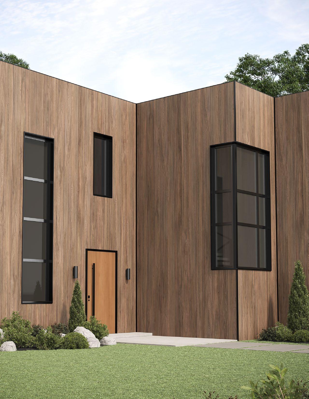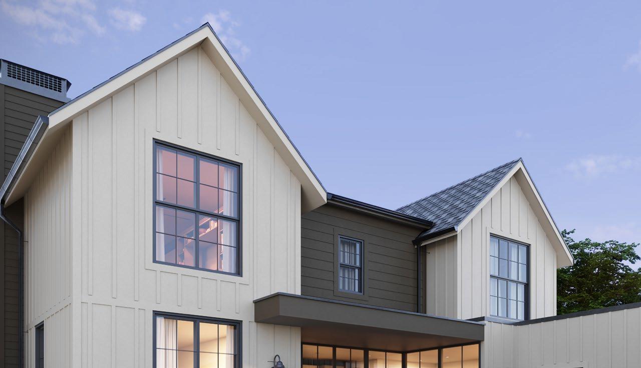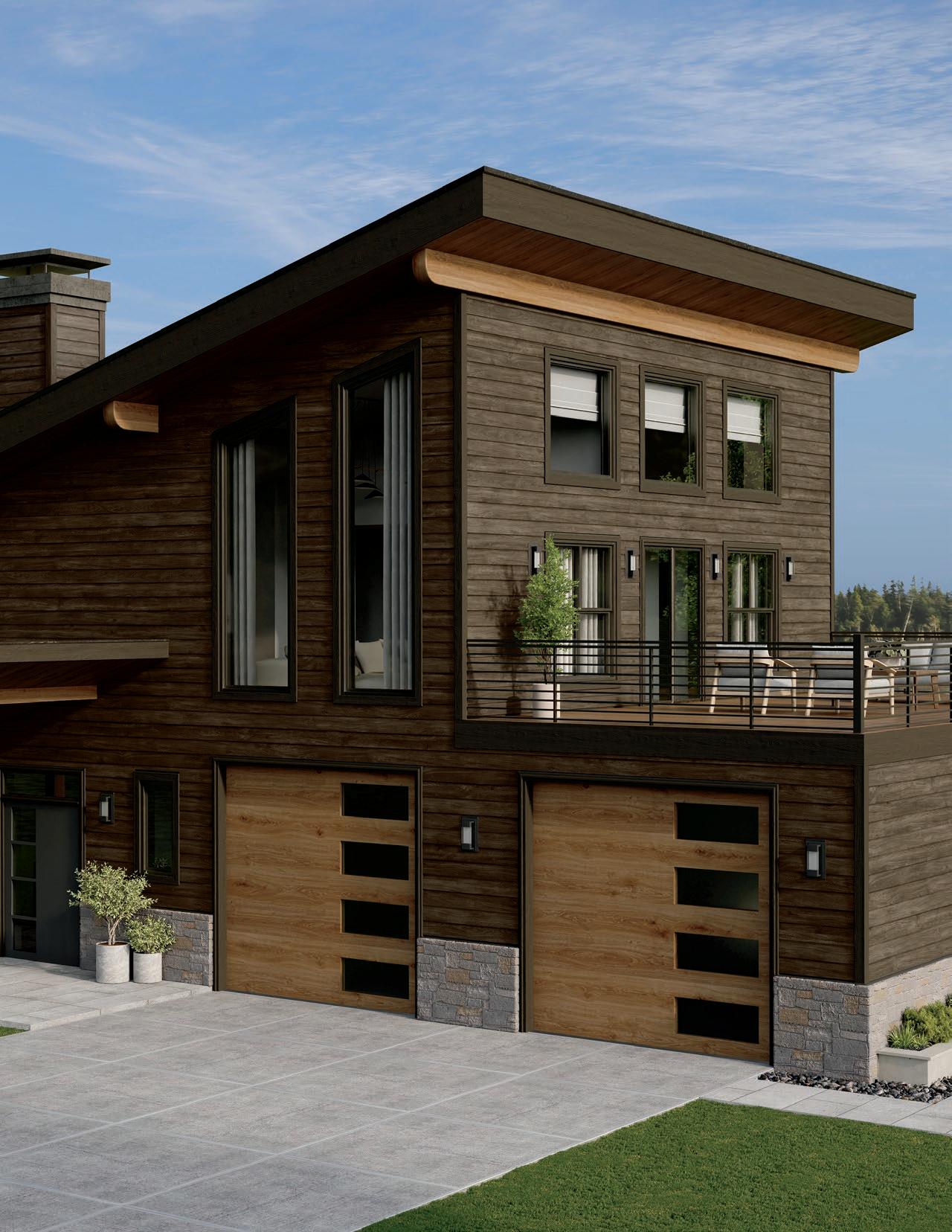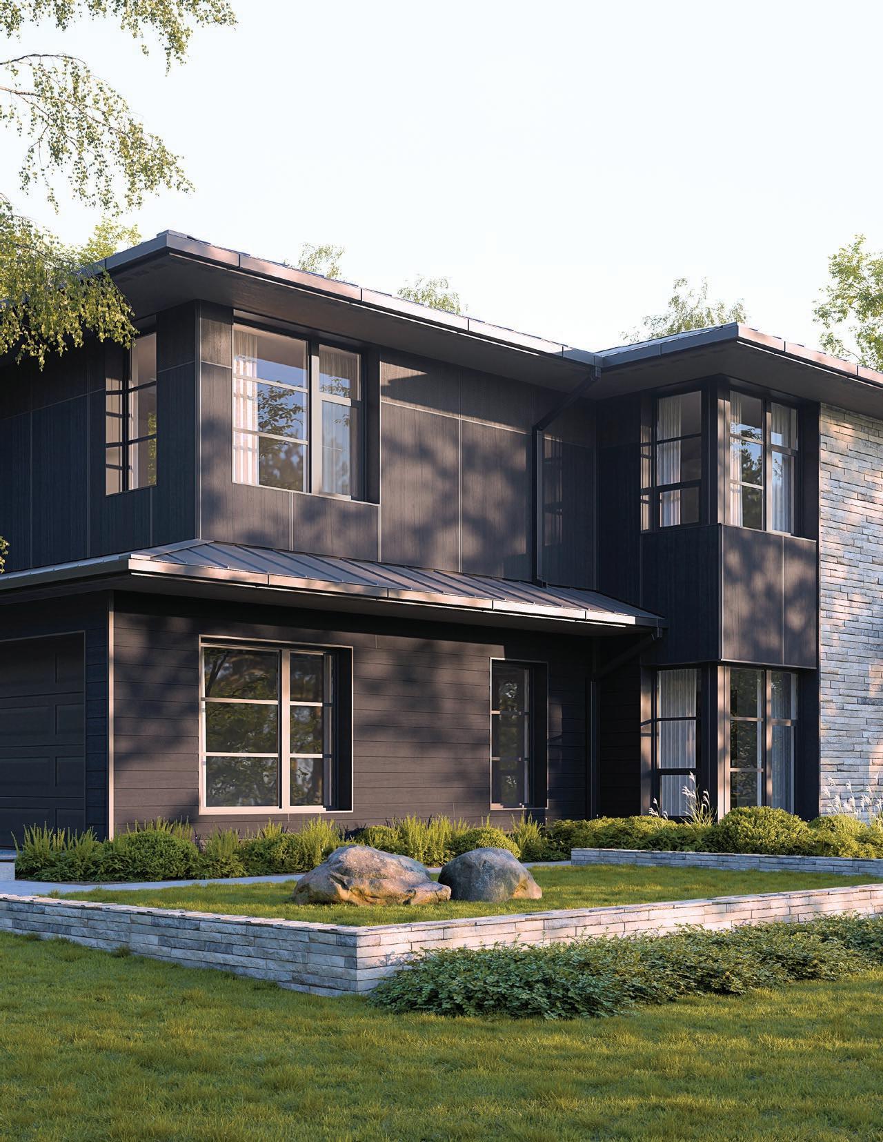 Elevate your exterior by incorporating contrasting trim and transitions between DuoBlend Premium panels. This bold approach creates a visually striking mixedmaterial look with refined trim accents.