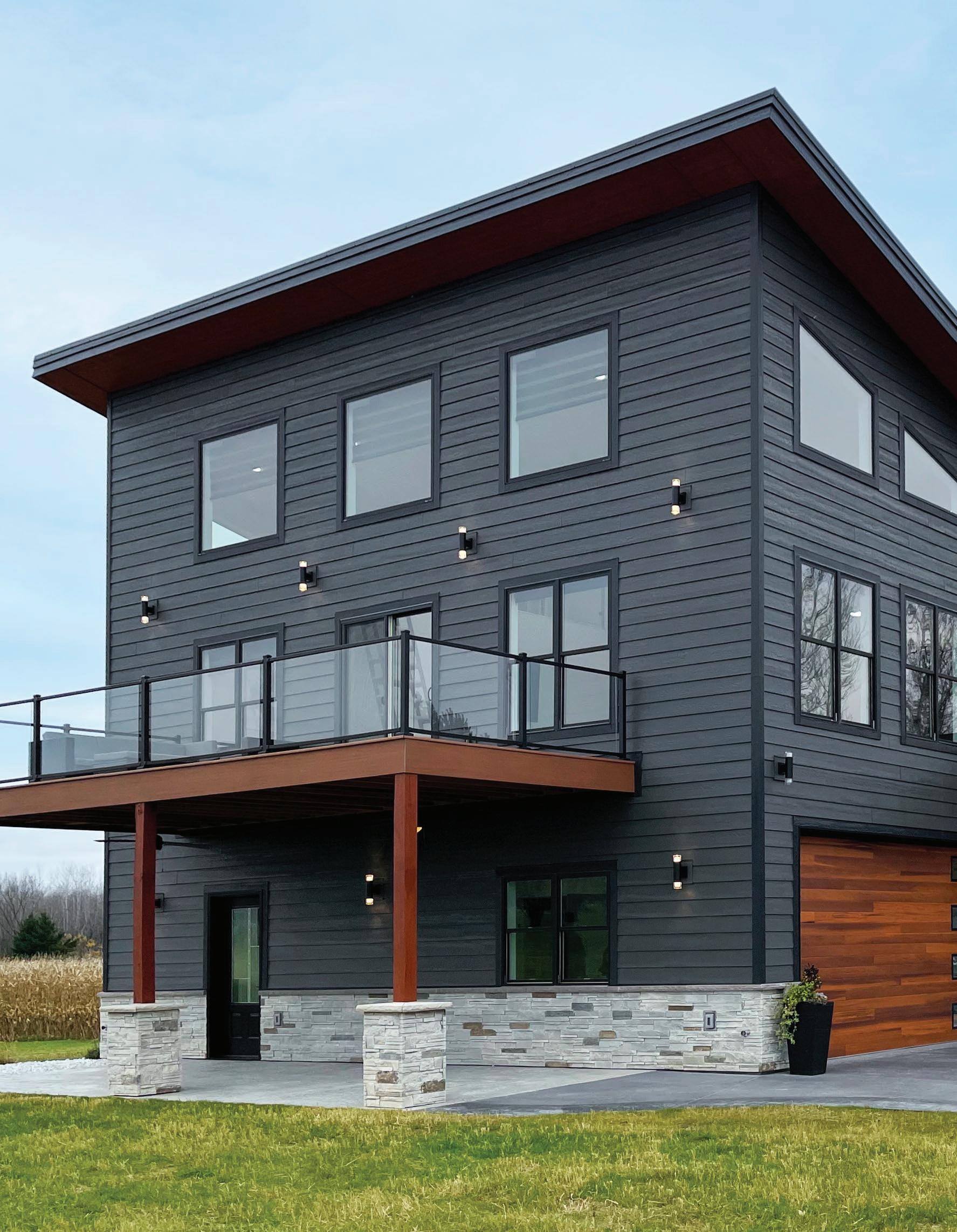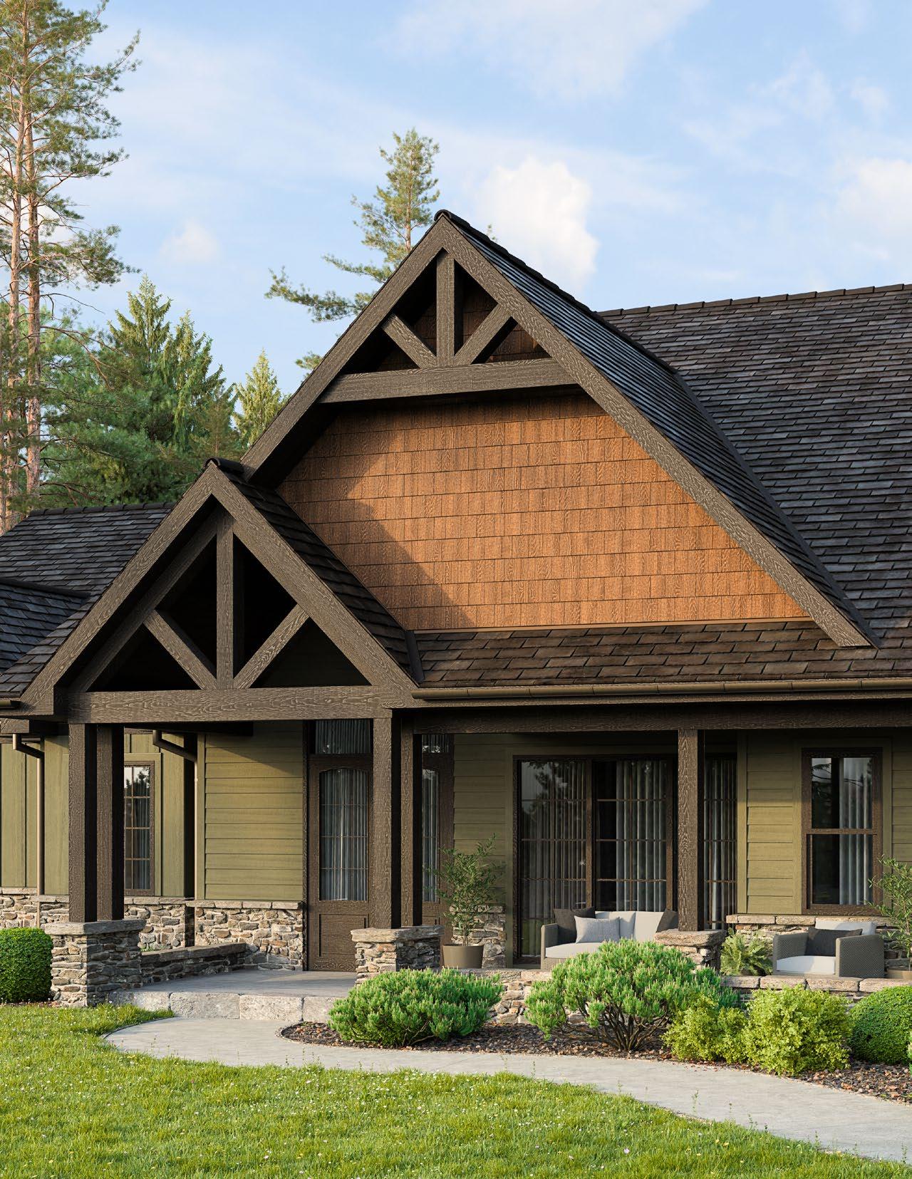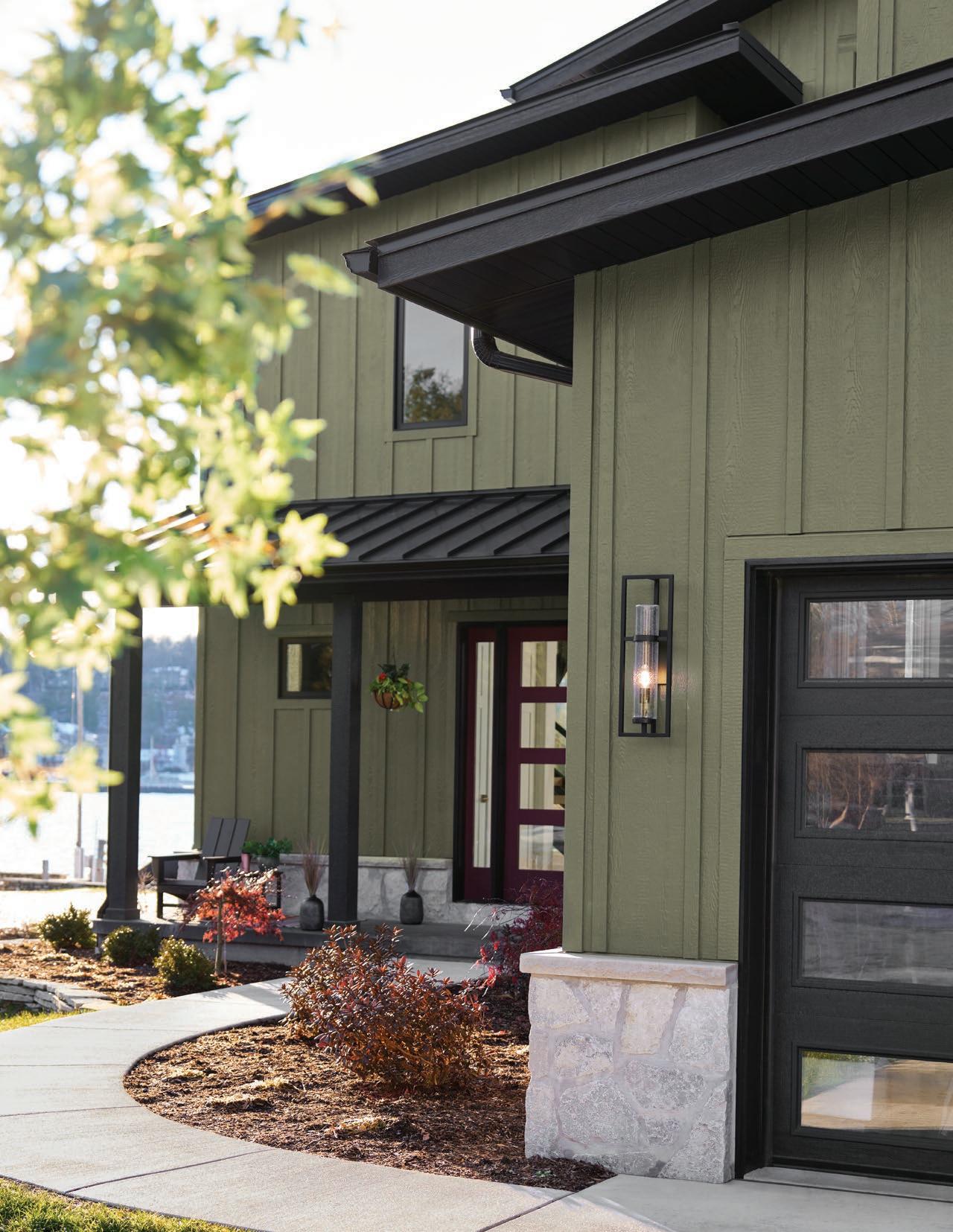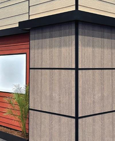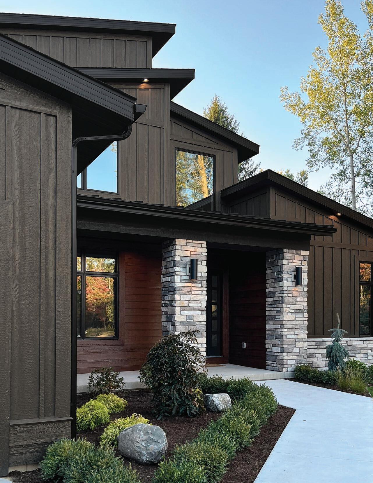 Elevate your exterior by incorporating contrasting trim and transitions between DuoBlend Premium panels. This bold approach creates a visually striking mixedmaterial look with refined trim accents.