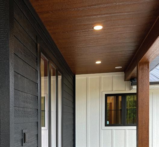 Panels can be used as siding or as accent soffit. Opting for a DuoBlend Premium color adds increased depth and visual interest to an otherwise overlooked area. This approach enhances the aesthetics of your outdoor space and creates a welcoming atmosphere for guests.