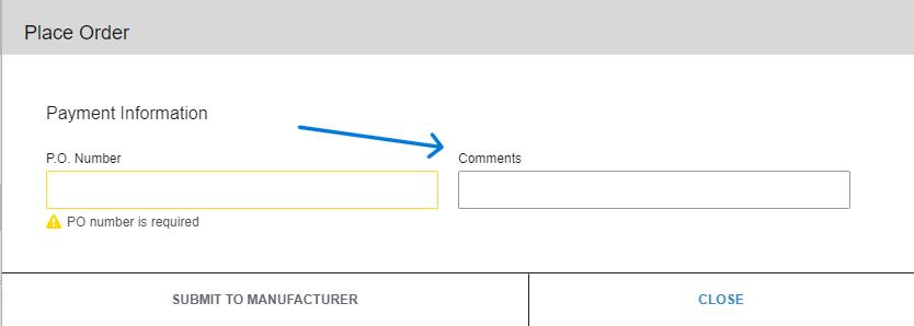 7. You may also enter notes to the right of the PO with any special instructions for the Customer Service Representative to review when confirming your order.
