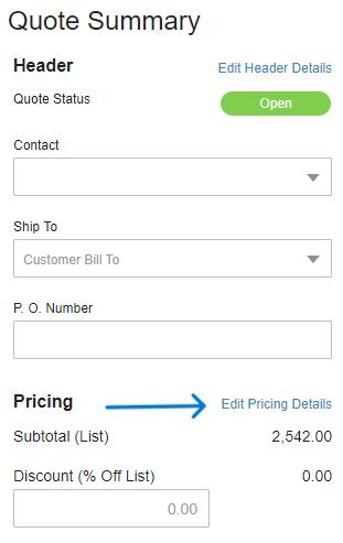 1. In the main screen of the quote select “Edit Pricing Details”.