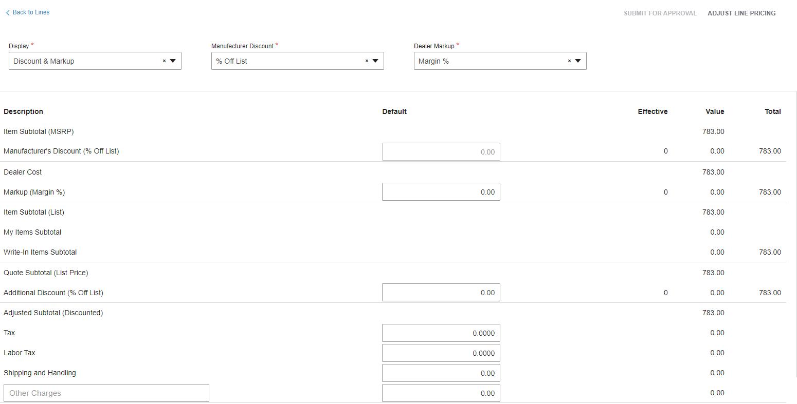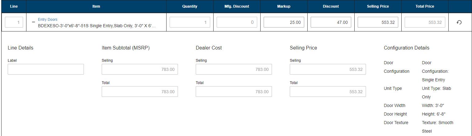 Adjusting price at the order level willl affect all lines on the quote equally and allow changes to the bottom line details.
