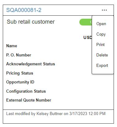 3. The Configurator will automatically create and open an identical quote and assign it a new quote number. The new number will be unique and does not correlate to the original quote.
