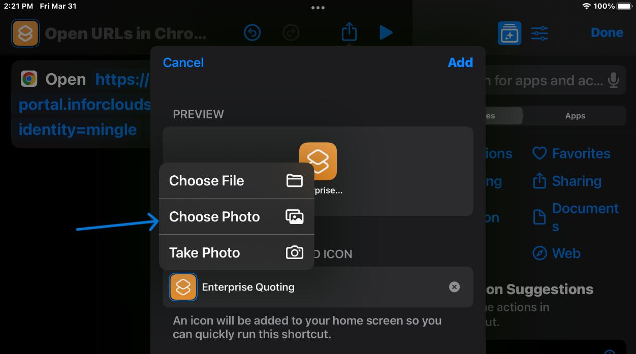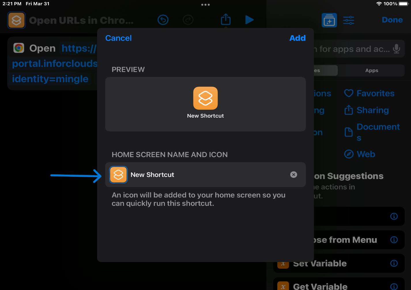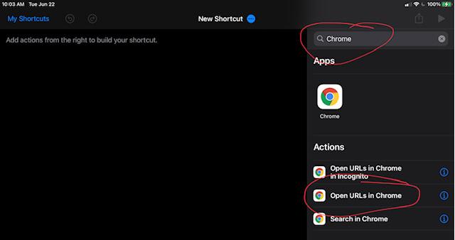 Notes: Google Chrome should be added to the iPad before creating the shortcut. Instructions provided using iOS 14.6, other iPad versions may work differently. Update is recommended before adding the shortcut.