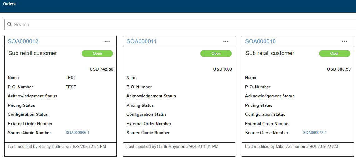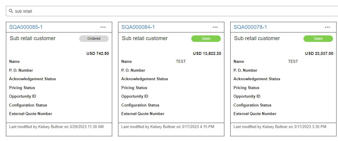 In the search box, you are able to use your name, the customer’s name, a quote number, the PO, etc to narrow down your search.