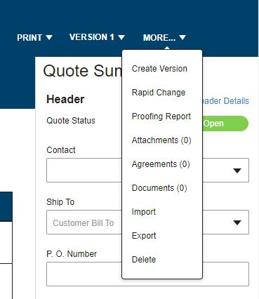 Another way to create multiple quotes with similar specifications is to create additional versions. The result is very similar to copying a quote but will result in quote numbers that correlate. This works well for offering multiple options for the same project.