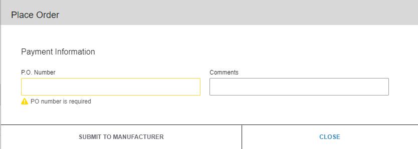 6. The Place Order box will open once you select “Place Order”. At this time, you are required to enter a valid PO number for the order. (Under the Quote Summary section, there is a link labeled “Edit Header Details” this is another area where you are able to enter a PO.)