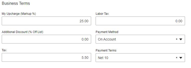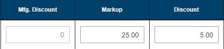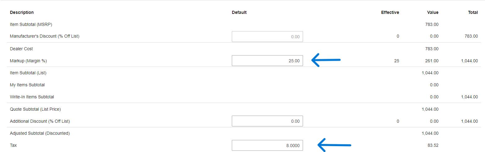 5. You can now populate all fields that you want to employ in your quote. Most common items are margin/markup and any appliable tax rate.