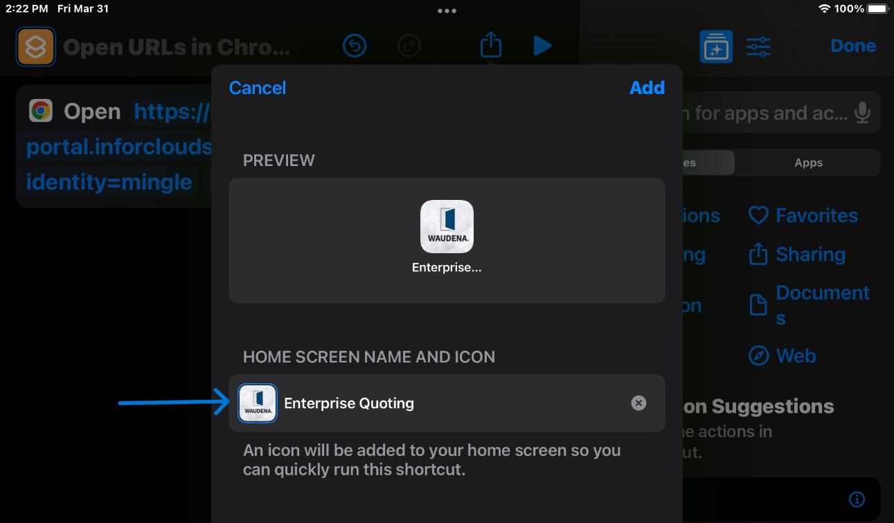 10. After confirming the name and image, select “Add” to place the shortcut on your desktop.