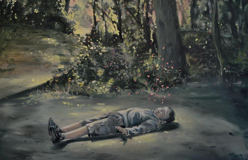 Leon works in oils on canvas and gouache on paper. His recent travel poster inspired paintings evoke a sense of adventure and nostalgia in familiar landscapes, focusing on green spaces.