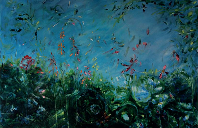 Gestural marks dance around the surface of each painting, creating abstract works inspired by the natural world.