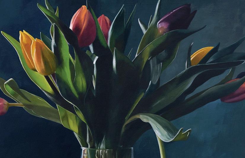 Kerry works in oil on upcycled wood and handmade khadi cotton rag. Her work encompasses landscapes, still lifes and portraiture, and highlights the contrast between light and shadows wherever possible.
